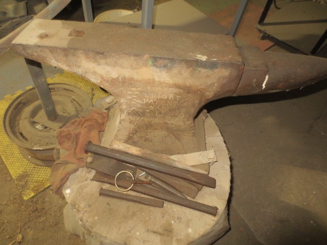 Anvil by Wright, Buggy seat, old license plates, barn doors